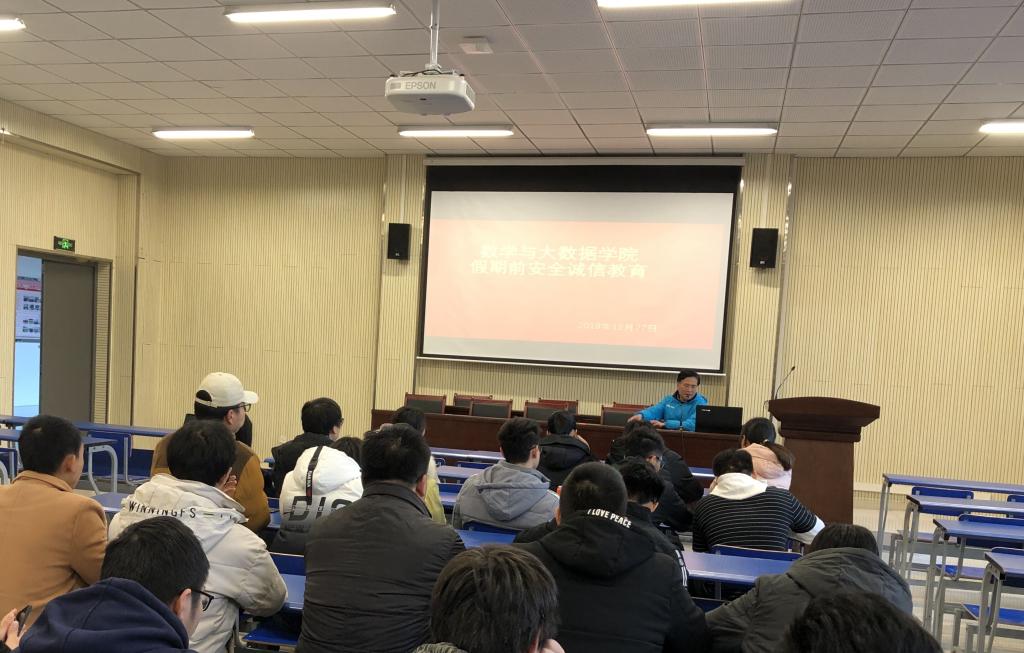 正值学期结尾,学生即将面临本学期的期末考试。为进一步树立我院学生诚信观念,增强诚信意识,维护正常考试纪律,12月30日,数大学院在学院报告厅诚信考试专题教育,院党委副书记李勇主讲。