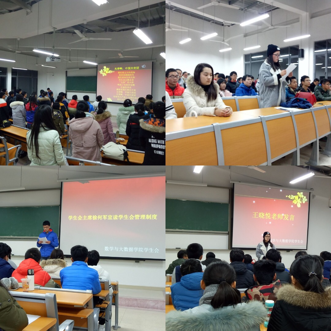 为了新学生会日后更好的开展工作,2016年11月23号晚,数大学院学生会在天工南楼506召开了第一次全体会议。辅导员王晓悦,学生会主席团及各部门干事参加了本次会议。