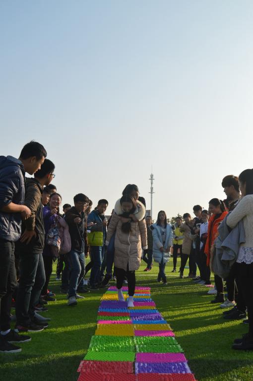 参与活动的成员按照班级为单位分成四队,采取积分比赛制,经过多项趣味活动后,积分最高的队胜出。活动由蒙眼躲地雷拉开序幕,接下来的活动都是在指压板上进行的,活动考验参赛者的勇气与毅力。大家依次做了指压板跳绳、指压板青蛙跳接力赛、抱人指压板行走。这三个活动都体现了学生会干部、班级干部的面对困难积极性与不怕艰难勇往直前的信念。游戏精彩,各班的成绩也是你追我赶,难分伯仲。最后,经过四轮游戏的比拼,信计一班位居第一,大家在欢声笑语中结束了此次精彩纷呈的素质拓展活动。
