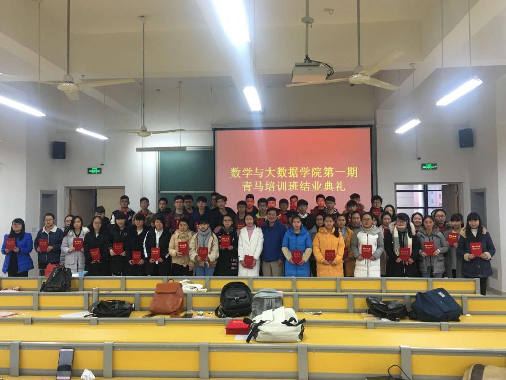 12月18日下午,数学与大数据学院2016年“青马工程”暨大学生骨干培训班结业典礼在山南校区203教室举办。学院党委副书记兼行政副院长李勇出席会议,2016级辅导员及2016级所有班级学生干部和入党积极分子等69名同学参加了本次结业典礼。