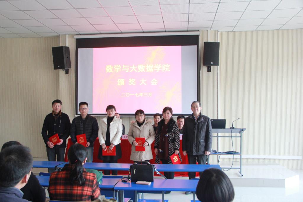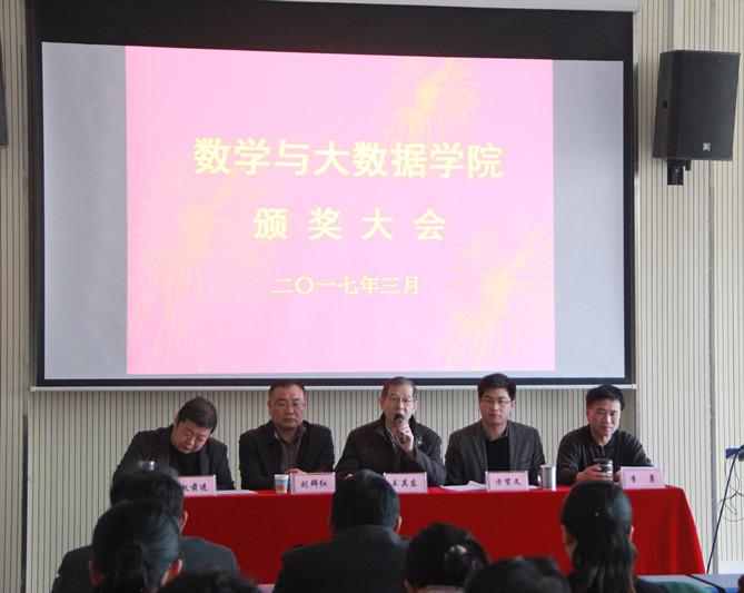 3月4日下午三点,数学与大数据学院在学院报告厅召开全体教职工大会暨颁奖大会。校长王其东、教务处副处长刘群红应邀出席大会,院领导与全体教职工参加大会,会议由院党委副书记(主持工作)赵前进主持。