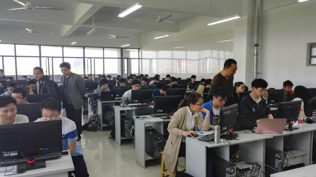 学校教务处大力支持,数学与大数据学院认真准备,制定了详细的参赛计划。数学与大数据学院副书记(主持工作)赵前进、副院长(主持工作)方贤文亲临比赛现场看望参赛队员和指导老师,了解竞赛的基本情况,对指导老师的辛勤工作给予肯定。共有来自全校各院系100余支队伍参赛,每支队伍限定3人,经过三天高强度的比赛,所有参赛队提交竞赛论文,完成全部比赛内容。