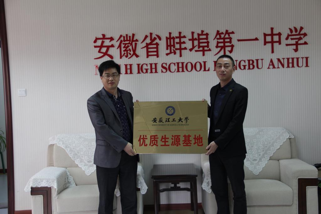 4月21日,教务处副处长黄胜龙、数学与大数据学院党委副书记(主持工作)赵前进和副院长(主持工作)方贤文一行赴蚌埠市,为两所省级示范高中蚌埠一中和蚌埠四中授予安徽理工大学优质生源基地牌,并签署优质生源基地共建协议。