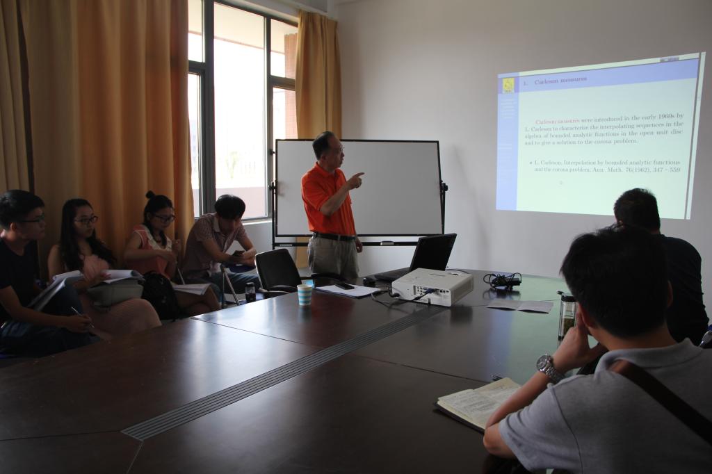 5月30日下午4:00,汕头大学娄增建教授给学院一二年级研究生做了“Carleson measure of Möbius invariant function spaces”的学术报告,报告围绕Möbius不变量函数的测量问题进行阐述,并介绍他课题组在该领域的最新研究成果,有利于拓展我校应用数学专业代数方向研究生的学术视野。