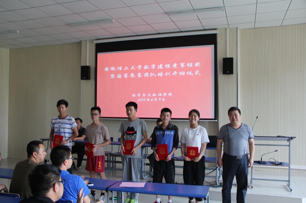 6月9日下午,数大学院在学院报告厅举行了2017年度数学建模竞赛颁奖暨国赛参赛团队培训开班仪式。数大学院副书记(主持工作)赵前进,副院长(主持工作)方贤文、副书记兼副院长李勇出席了会议,数学建模全体指导老师及全体参赛学生参加了会议,仪式由耿显亚主持。