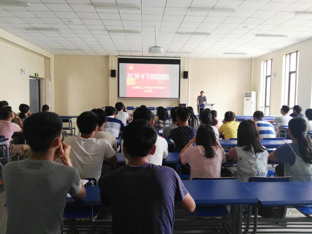 为进一步推动“两学一做”学习教育的常态化制度化,推进党员管理工作的制度化、规范化,引导毕业生党员在离校后继续发挥党员先锋模范作用,数大学院党委于6月19日为2017届毕业生党员上了最后一次党课。学院党委副书记赵前进(主持工作)、毕业班辅导员及毕业班党员参加。