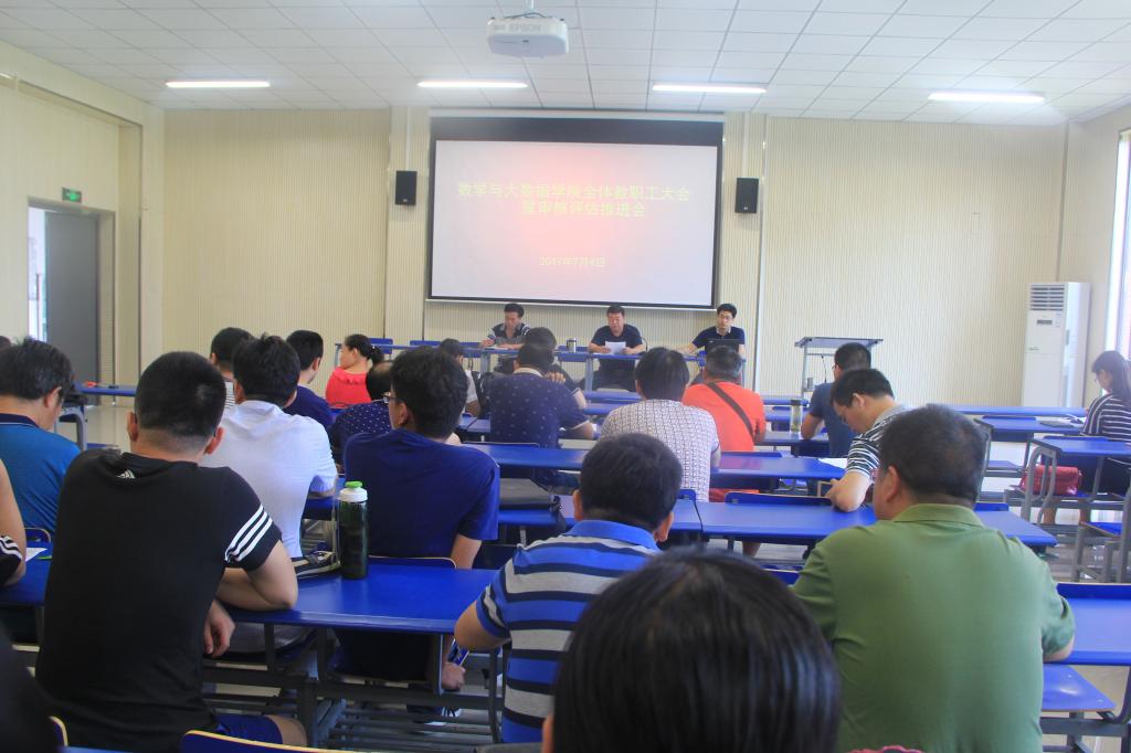 7月4日上午,数大学院在院报告厅召开全体教职工大会暨审核评估推进会。院党委书记(主持工作)赵前进、副院长(主持工作)方贤文、副书记兼副院长李勇及全院教职工参加会议。会议由赵前进主持。