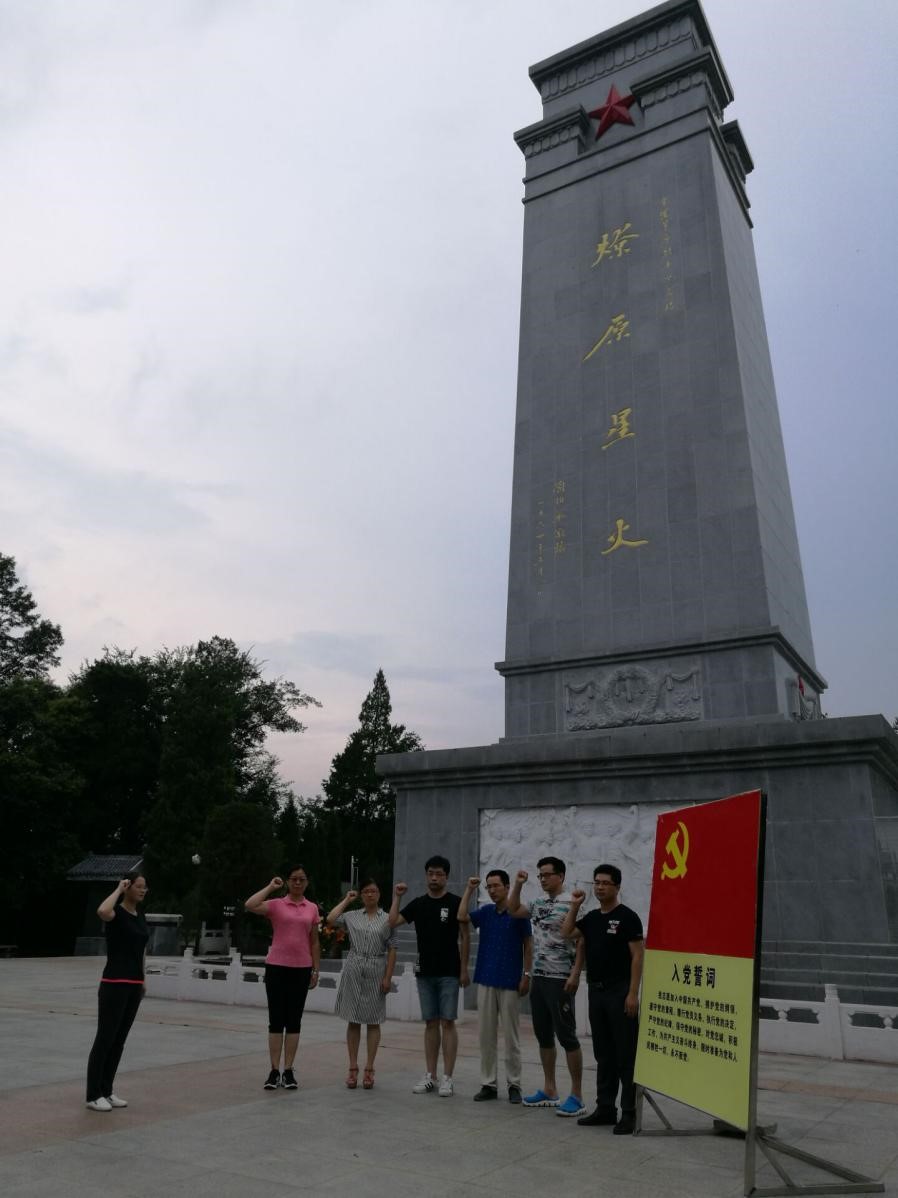 金寨县是全国第二大将军县,被誉为“红军的摇篮,将军的故乡”。全体党员怀着激动的心情来到红军广场。首先参观了金寨县革命博物馆和洪学智将军纪念馆。馆中展出的每一张革命历史照片,每一件实物,都让我们感受到当年先烈抛头颅、洒热血、不畏艰辛和不怕牺牲的精神。洪学智将军纪念馆陈列着将军一生的革命历程,将军身经百战,打了许多硬仗恶仗,并且他工作中善于创新和统筹,通过科学调配后勤资源为革命上栗提供最大的后勤保障,是我军后勤现代化建设的开拓者。随后,全体党员瞻仰了烈士墓,在革命烈士纪念碑前,面对着党旗,举行了重温入党誓词活动。