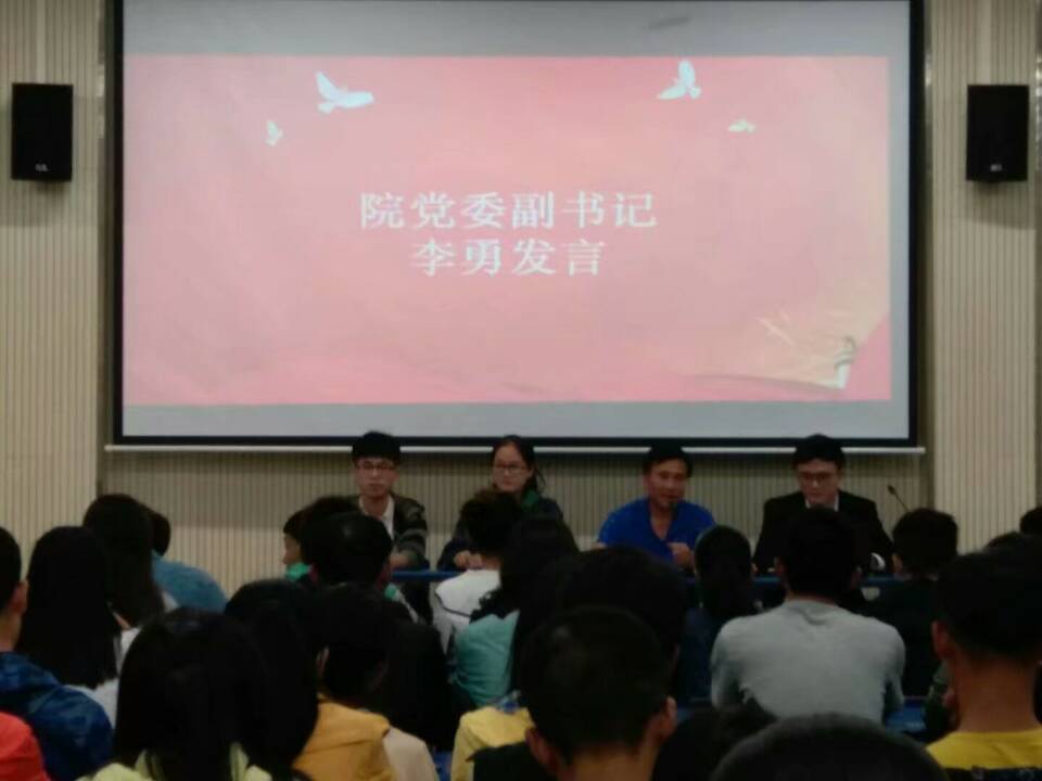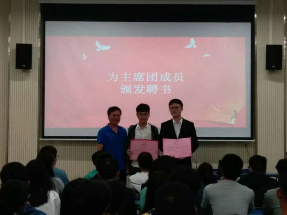 大会在庄严的共青团团歌中拉开序幕。接着学生会主席徐何军发言。他首先肯定了过去一年里大家的工作,并对学院领导老师及全体成员为学生会所付出的努力表示了感谢。接着回顾了自己三年来的工作历程,将自己的经验传授给了在场的学弟学妹们。懂得感恩,严于律己,完善规章制度,这是徐何军主席对学生会全体成员的期望。随后副书记李勇讲话。李勇表示学院会继续大力支持学生会的工作,就过去一年学生会的工作给予了肯定,并对新一届学生会工作提出了自己的建议。李勇希望院会各部门能在保持过去优良传统的同时,多加创新,合理利用资源,多多开展有新意、有意义的活动,学生干部能严格要求自己,努力学习,增强责任心,做到学习、工作两不误,最后李勇对即将开始的迎新工作给出了要求。随之团委负责人王晓悦宣布留任名单,李勇及主席团成员们为学生会各成员颁发了聘书。最后,优秀学生干部高梦甜、丁益分别进行了发言。高梦甜谈了过去一年的收获与感悟,丁益历数去年一年学院开展工作来以来取得的成果后,接着汇报了学生会新一年的工作计划,至此,我院首届学生会换届大会在同学们新学期对学生会的美好展望中落下了帷幕。