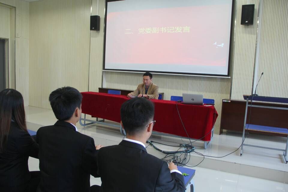 伴着激昂的中国共产主义青年团之歌大会拉开了帷幕。大会第一项副书记李勇发言,他首先代表学院对学生会新成员们的加入表示热烈的欢迎。接着,指出我院以实践育人为教育模式,以达到助人成才的目标,期望大家起于行,砺于行,止于行。李勇还对今后学生会工作提出要求,希望主席团带领各部把日常工作系统化、模块化,把各项活动进行分类,以提高工作效率,希望每位成员增强团队意识,加强自我学习,积极参与活动。大会第二项,团委负责人王晓悦老师宣读学生会成员名单。大会第三项,主席团代表丁益宣读学生会的规章制度,分别从活动纪律、例会纪律、工作责任纪律等方面做了要求。最后,主席团代表郭鑫就本学期的主要工作做了部署与安排。