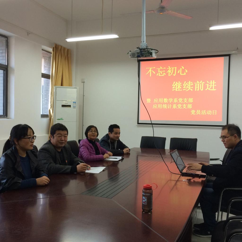 11月3日下午,数大学院应用数学系和统计系党支部组织全体党员教师收看了政论专题片《不忘初心继续前进》第一集《举旗定向》,学院党委书记赵前进参加了活动。