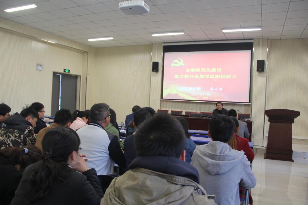 娄志勇从基层党组织标准化建设的提出背景、基层党组织标准化建设意见的出台、标准化建设的定位及具体措施等四个方面作了全面、系统的阐述。娄志勇强调,管党治党,重在基层,推进基层党组织标准化建设是全面提升基层党组织组织力的重要抓手,是当前学校党建的龙头工作,各党支部书记要切实承担起责任,坚持“三会一课”制度,推进党的基层组织设置和活动方式创新,加强基层党组织带头人队伍建设,扩大基层党政组织覆盖面,着力破解一些基层党组织弱化等问题。