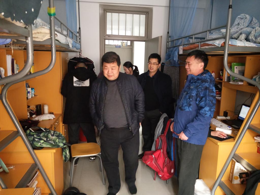 走访过程中,学院领导及老师认真检查学生宿舍存在的安全隐患,及时记录,未发现存在明显安全隐患。学院领导教育学生要加强安全意识,注意冬季用电安全,严格遵守学校宿舍管理规定。在本学期即将结束之际更应该注意宿舍安全,并告知学生要注意校园交通安全,按照学校统一要求停放自行车等交通工具。同时,学院领导及老师也对学生宿舍卫生进行检查,要求学生做好宿舍文明创建,提高学生住宿、生活质量。之后,学院领导和老师与大四同学深入交流,询问其考研以及工作情况,学生也对领导老师的关心表示感谢。(撰稿、核稿:数大学院 汤圣军、李勇)