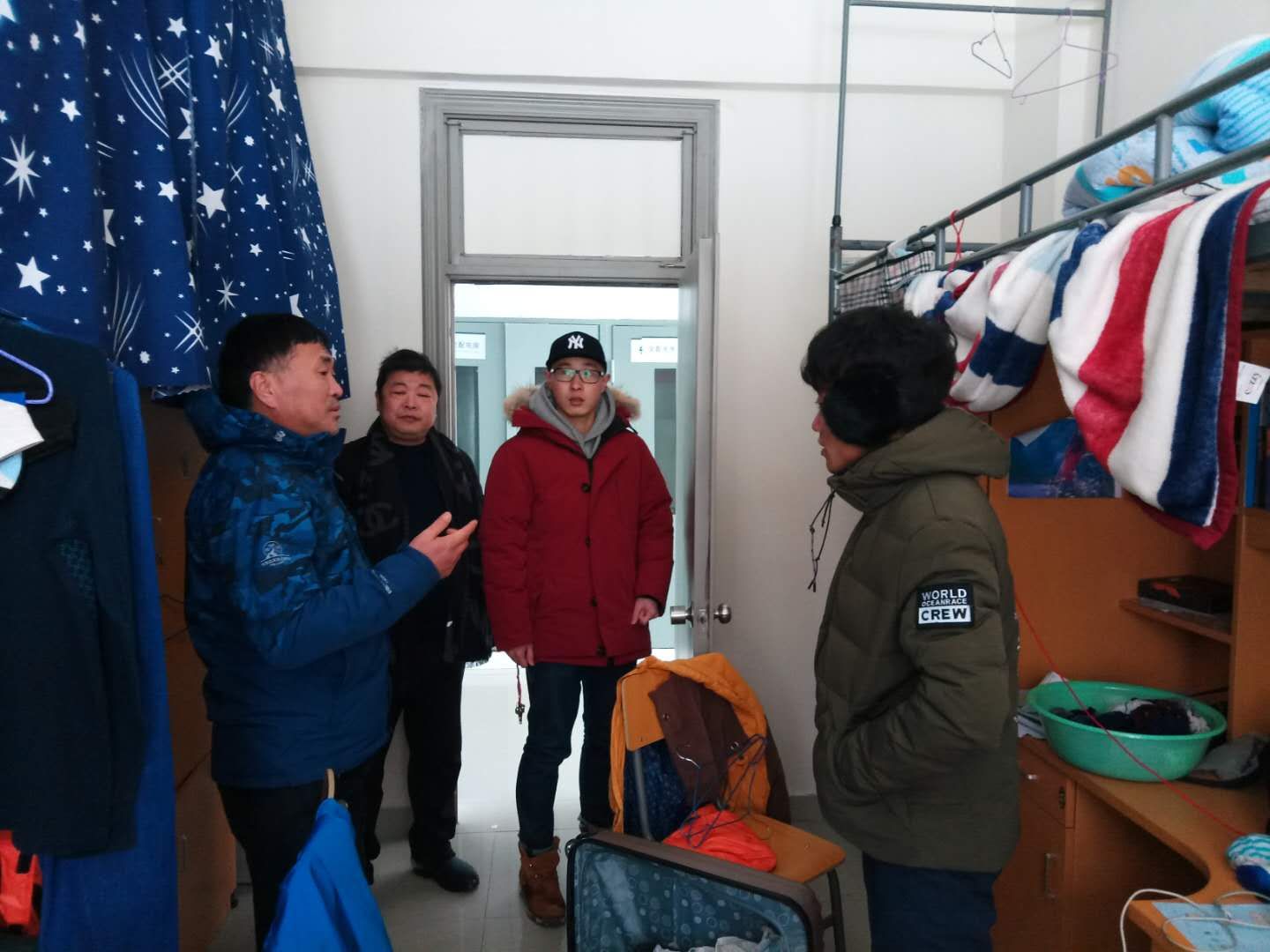 寒假将至,大部分学生已经放假回家,为确保学生宿舍假期安全和所有学生都能顺利返家,2018年1月26日上午,数大学院党委书记赵前进、党委副书记李勇及辅导员等再次深入学生宿舍进行安全检查。