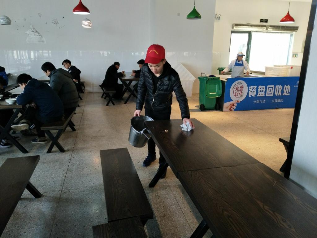3月10日、11日中午,义苑食堂来了一群头戴小红帽的志愿者,他们以饱满的激情、昂扬的斗志投入到本次食堂志愿服务活动中去。他们或帮食堂的阿姨们清理盘子、或擦桌子,在深刻体味到劳动的辛苦的同时,他们也收获了劳动奉献所赢得的喜悦与自豪感。