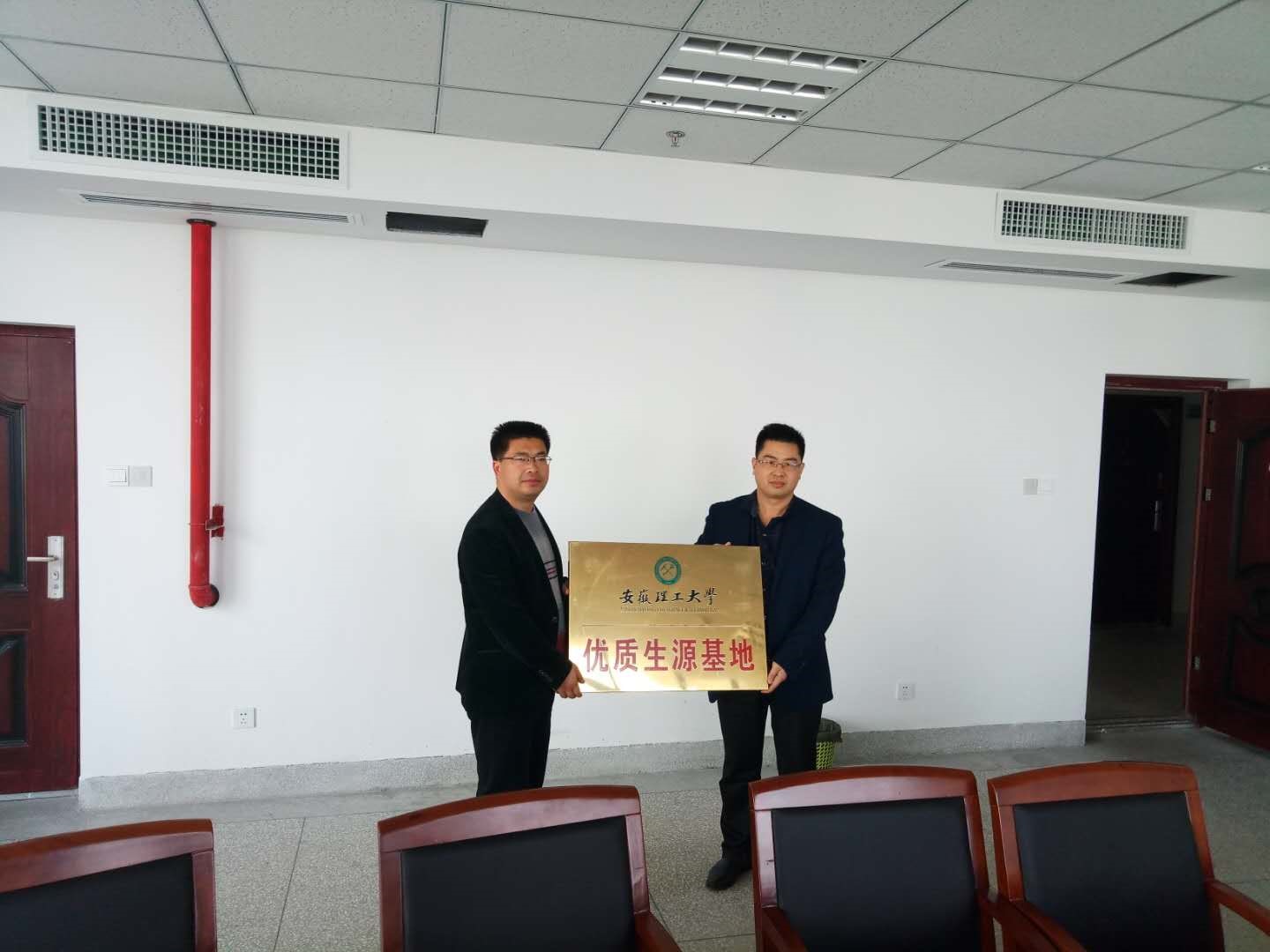教务处副处长刘启蒙代表学校分别与明光中学董培晓副校长、蚌埠铁路中学陈永利校长签署了“安徽理工大学优质生源基地”共建协议书,数学与大数据学院院长方贤文授予两校安徽理工大学优质生源基地牌匾。 (撰稿、核稿:数大学院 陈小奎、李德权)