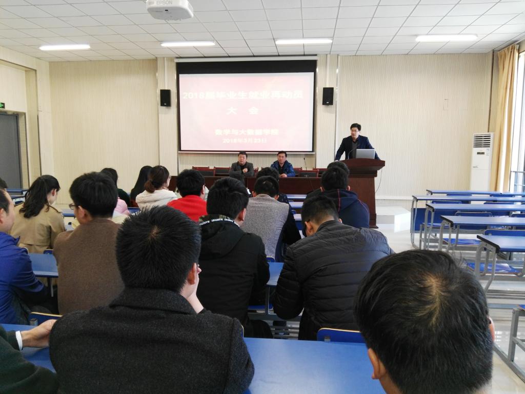 3月23日下午,数学与大数据学院在院报告厅召开2018届毕业生就业再动员大会。院领导、毕业班辅导员、2018届在校毕业生参加会议。