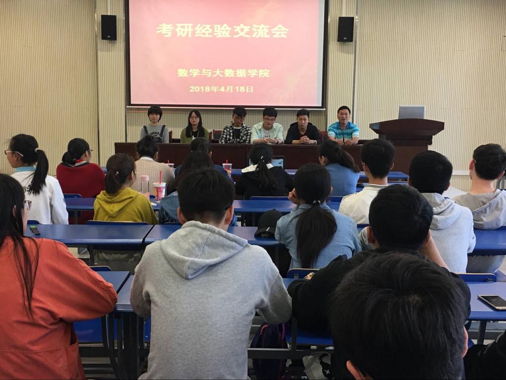 4月18日中午,数大学院在院报告厅举办考研经验交流会,会议由院党委副书记李勇主持。2014级优秀学生代表和2015级全体同学参加了交流会。