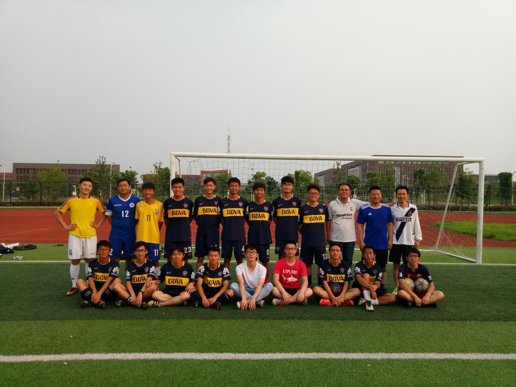 随着一声哨响,比赛正式开始,双方队员迅速进入比赛状态,奋力奔跑,积极拼抢。老师们放下了平日里的教师包袱,从一丝不苟的教学状态转变为张扬洒脱的运动状态,学生们也一改平时面对老师们时的恭敬局促,变得自信活跃。赛场上不分师生,争锋相对,呐喊声、加油声响成一片,并不时爆发出一阵阵欢声笑语。最终,以4:4的平局结束了本次师生足球友谊赛。