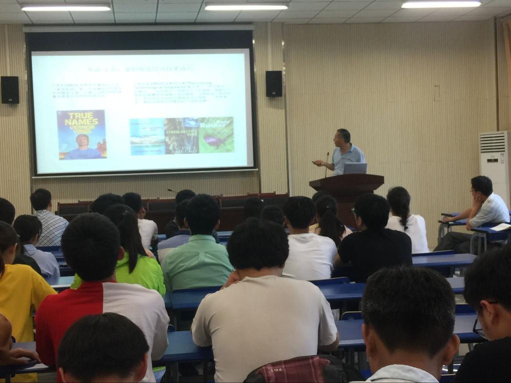 从科幻的角度,赵如汉教授精彩的报告展示了数学与艺术、人文等学科的关联,让在座学生脑洞大开。他还强调了兴趣在学好数学中的重要作用,并就美国大学本科教育的一些基本情况、大数据等和同学们进行了热烈交流。