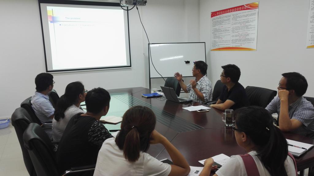 报告中,赖虹建教授重点介绍了应用图的邻接矩阵特征根来刻画图的拓扑结构及其性质的研究思路与方法,重点介绍了其课题组在这一方面的最新系列进展。报告内容详实丰富,讲解深入浅出、生动风趣。赖虹建教授还与我校相关领域的师生进行了充分的交流讨论,并就相关研究问题提出了建设性建议。与会研究生纷纷表示受益匪浅,开拓了科研视野。