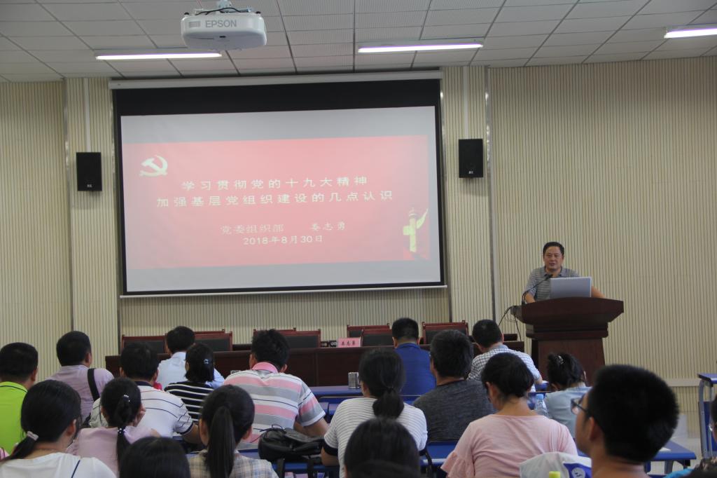 娄志勇以《学习贯彻党的十九大精神,加强基层党组织建设的几点认识》为题对全体党员展开培训。他围绕十八大以来的实践回顾、十九大提出的新要求、加强新时代基层组织建设三个方面向全体党员讲授了基层党组织建设要以提升组织力为重点,突出政治功能,还要坚持问题导向,创新方式方法,持续用力,久久为功。