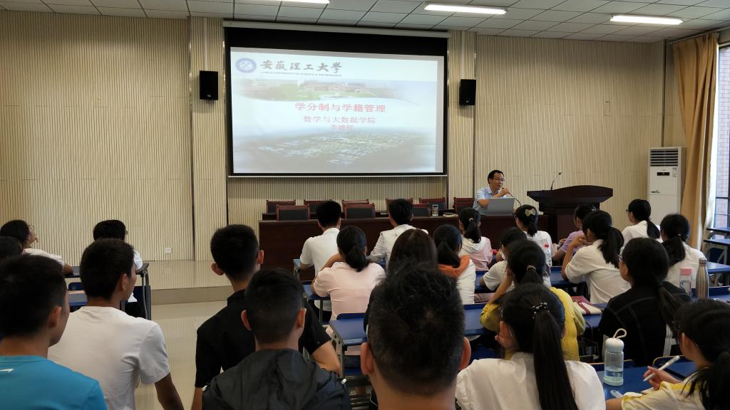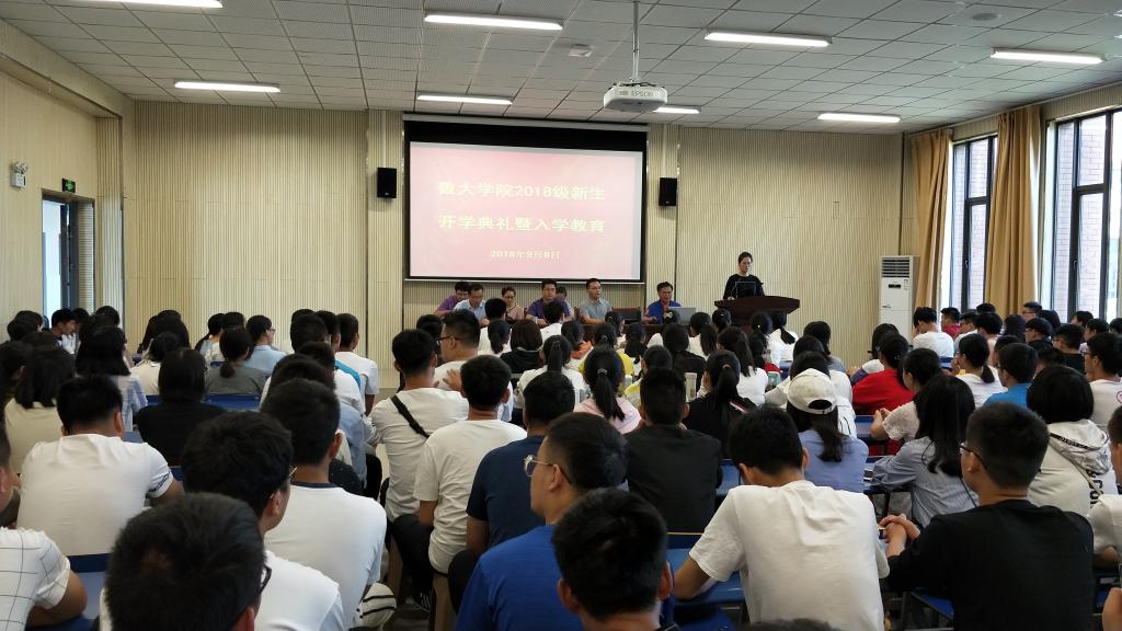 9月8日上午,数学与大数据学院在学院一楼报告厅举行了新生开学典礼暨新生入学教育。院系领导、新生辅导员及2018级新生参加活动。