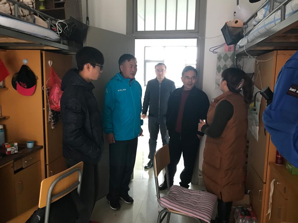 为增强学生安全意识,确保学生宿舍安全,推进学院文明创建工作, 2018年11月30日,数大学院党委冯定昌、党委副书记李勇、辅导员班主任等深入学生宿舍进行安全卫生检查。
