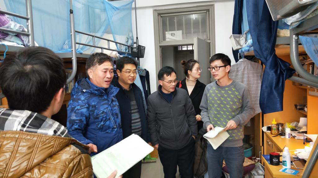 12月21日上午,数大学院党委书记冯定昌、院长方贤文、党委副书记兼行政副院长李勇及辅导员走访学生宿舍,看望即将考研的学生。