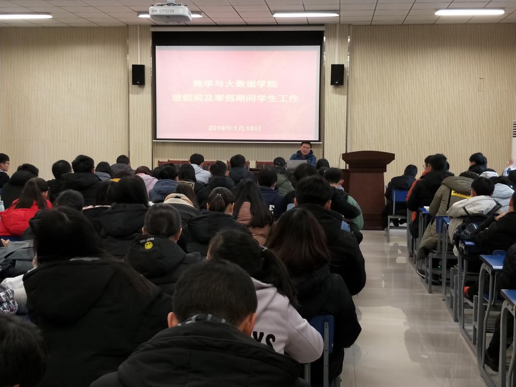 根据《关于做好放假前及寒假期间有关学生工作的通知》文件要求,切实做好数大学院放假前及寒假期间有关学生工作,1月10日中午,数大学院召开放假前及假期学生工作大会,会议由院党委副书记李勇主持,全体2018级学生参加。