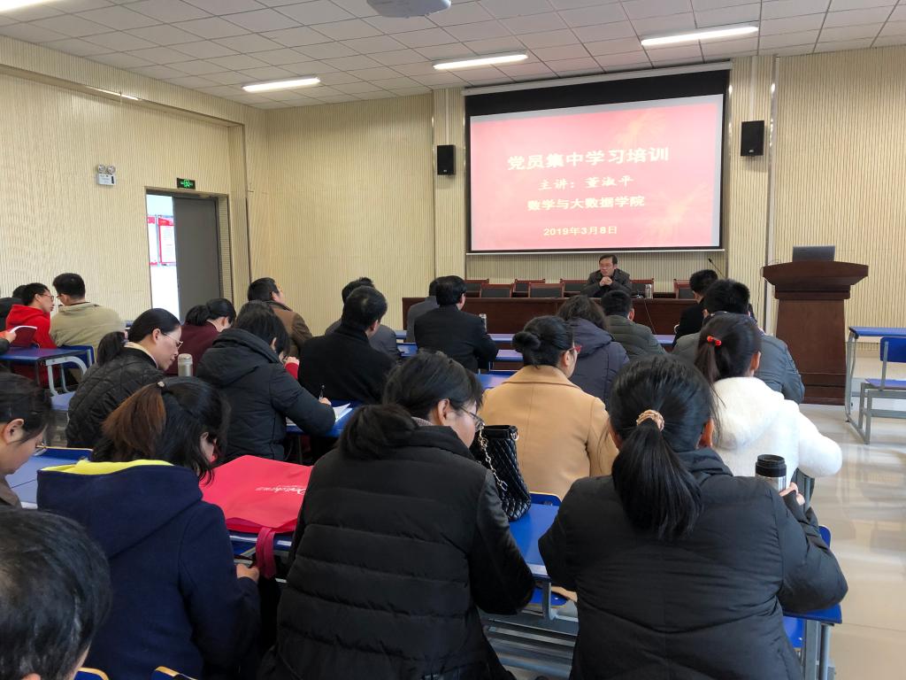 3月8日下午,校党委宣传部副部长(主持工作)董淑平应邀为数大学院全体党员进行培训。全院师生党员共计90余人参加培训。