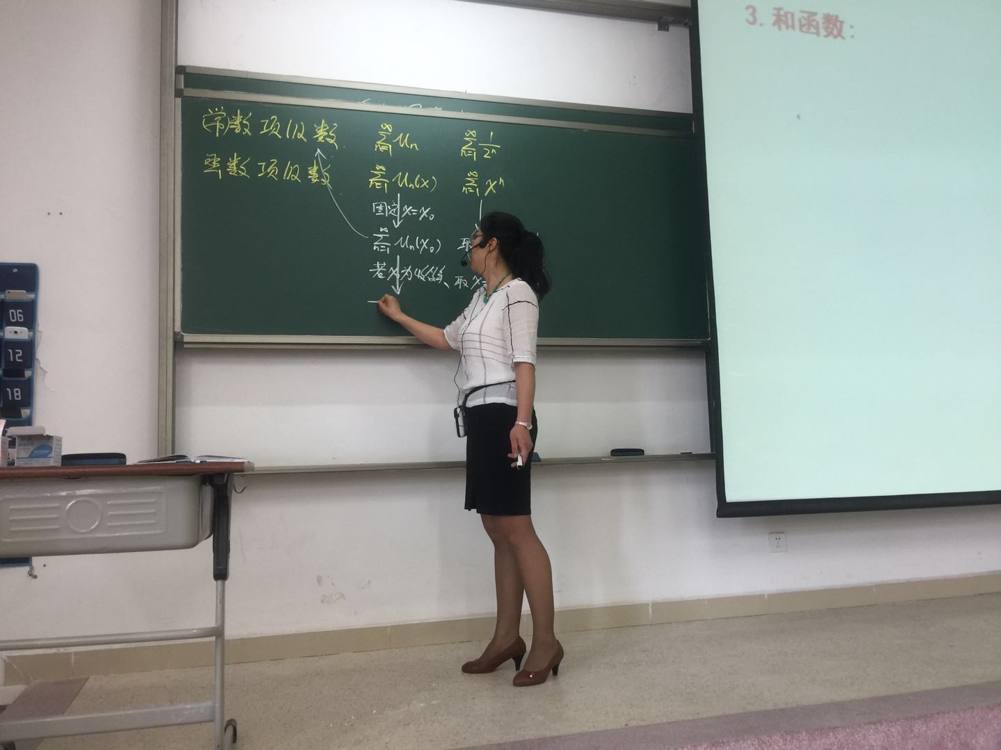 覃晖老师从函数项级数的概念开始引申,介绍了幂级数及其收敛性,并结合典型例题深入浅出地讲解了幂级数和函数和收敛域及其求法。教学过程中,覃晖老师谈吐自如,重点突出,节奏把控严谨,板书规范,课堂气氛活跃。覃晖还穿插介绍了数学家阿贝尔短暂但又及其绚烂的生平,勉励同学们珍惜青春年华潜心学习。参加观摩活动师生认真聆听了此次公开课,纷纷表示获益匪浅。