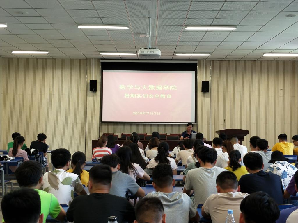 为做好2019年暑假参加实训和留校学生管理工作,保证学生有一个安全的学习和生活秩序,7月3日和4日数学与大数据学院分别组织全体参加实训和留校学生在学院楼一楼会议室召开安全教育专题会,院党委副书记兼副院长李勇和带班辅导员参加了会议。