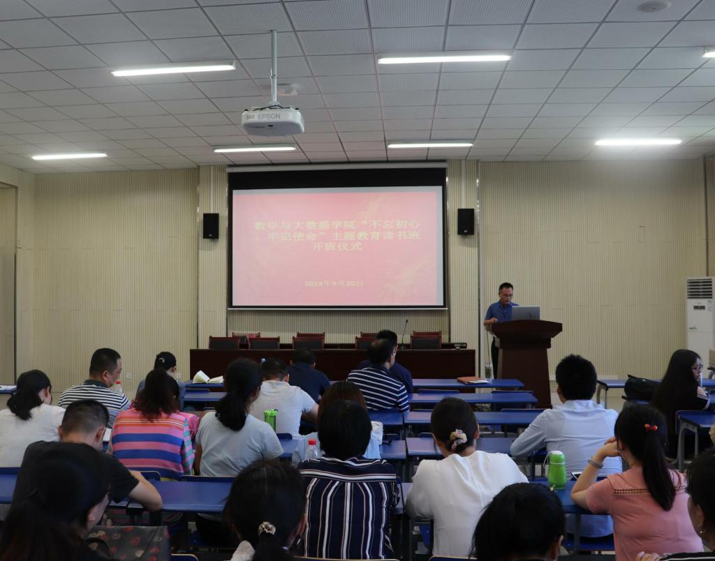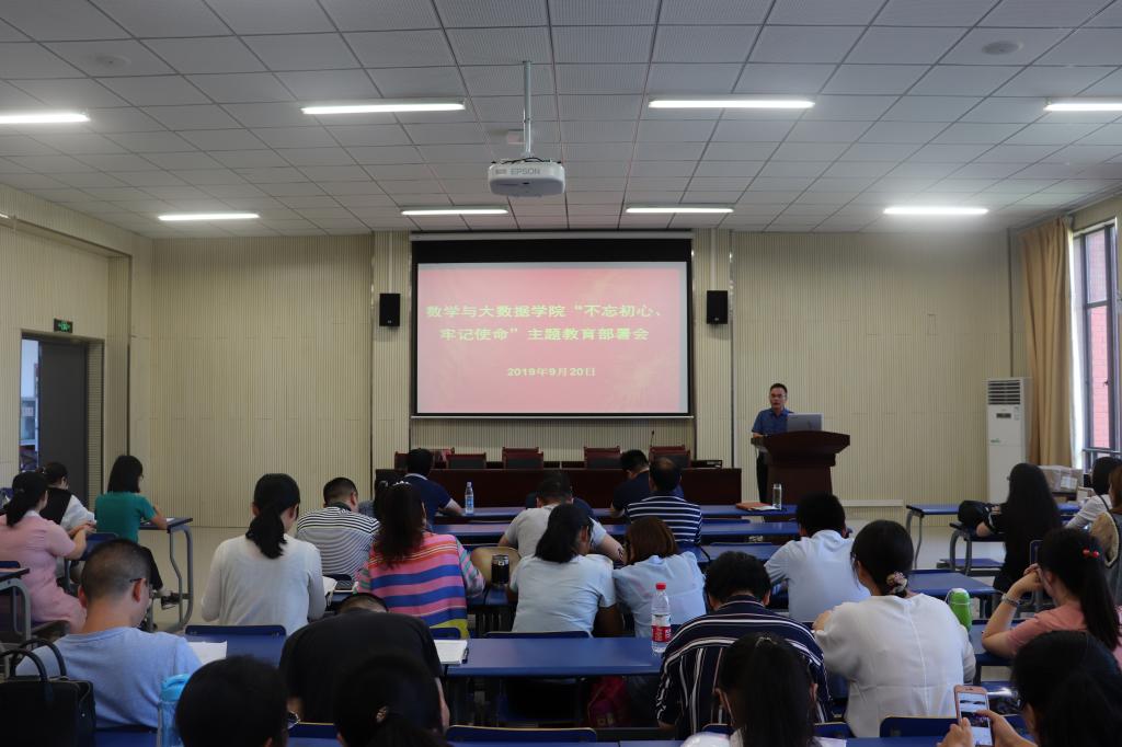 9月20日下午,数学与大数据学院在院报告厅召开“不忘初心、牢记使命”主题教育部署会。党员院领导及师生党员参加会议。会议由院党委副书记李勇主持。