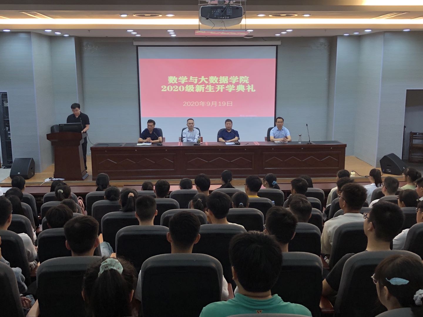 9月19日上午,数学与大数据学院在安徽理工大学图书馆三楼报告厅成功举办了2020级新生开学典礼。学院领导班子、学院教师代表、老生代表、辅导员和2020级本科及研究生全体新生参加了大会,迎新会由学院党委副书记兼行政副院长李勇主持。