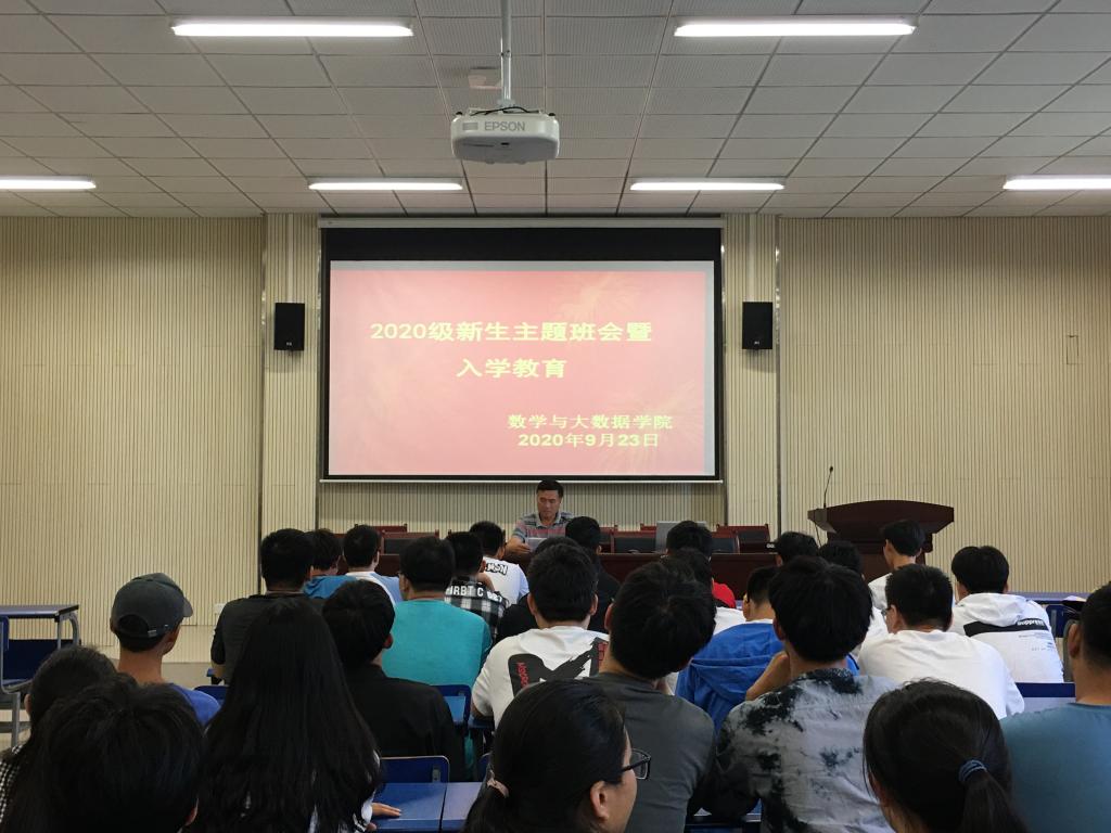 9月23日下午,数学与大数据学院在学院一楼报告厅召开了2020级新生主题班会暨新生入学教育。学院党委副书记兼行政副院长李勇、辅导员和2020级本科全体新生参加了本次班会,班会由辅导员胡娟主持。