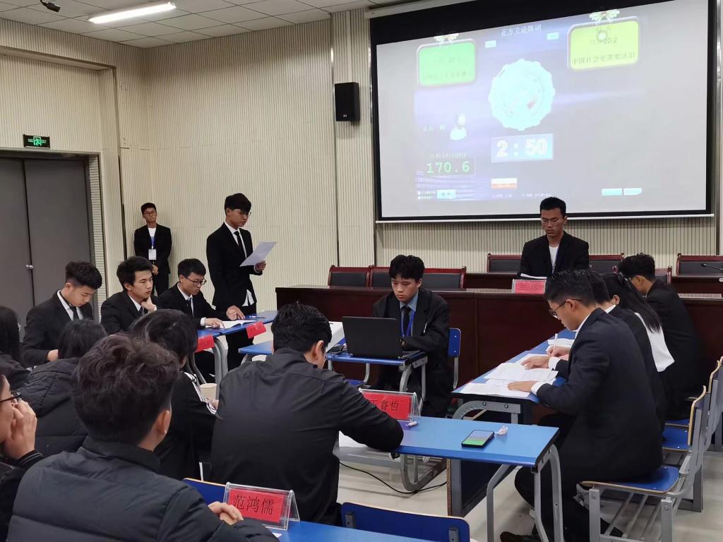 决赛共分为两组。第一组是数大20-3班和信计20-2班分别作为正反双方对“中国社会更需要德治还是法治”进行辩论。双方选手依照自己观点展开辩论,凭借强有力的论据和流利的表达能力将比赛推向了白热化阶段。 第二组是数大20-2班与应统20-1班进行的冠军争夺赛。作为正方的数大20-2班与反方应统20-1班围绕“评价行为善恶的标准是效果还是动机”进行辩论。双方辩手可谓唇枪舌战、妙语连珠,他们旁征博引,将比赛带入了一个又一个的高潮。比赛结束,评审团对双方辩手的表现进行了肯定,经过评委的打分,最终应统20-1班获得一等奖,数大20-2班获得二等奖,信计20-2班获得三等奖,以及吴小懿、何昱毅等4位同学获得了“最佳辩手”荣誉称号。