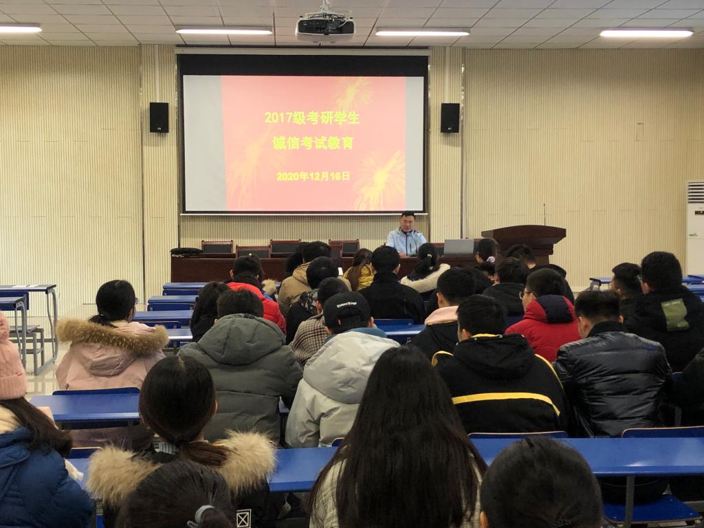 12月16日中午,数大学院在明道楼一楼报告厅开展2017级考研学生诚信考试教育活动。院党委副书记李勇主持本次教育活动