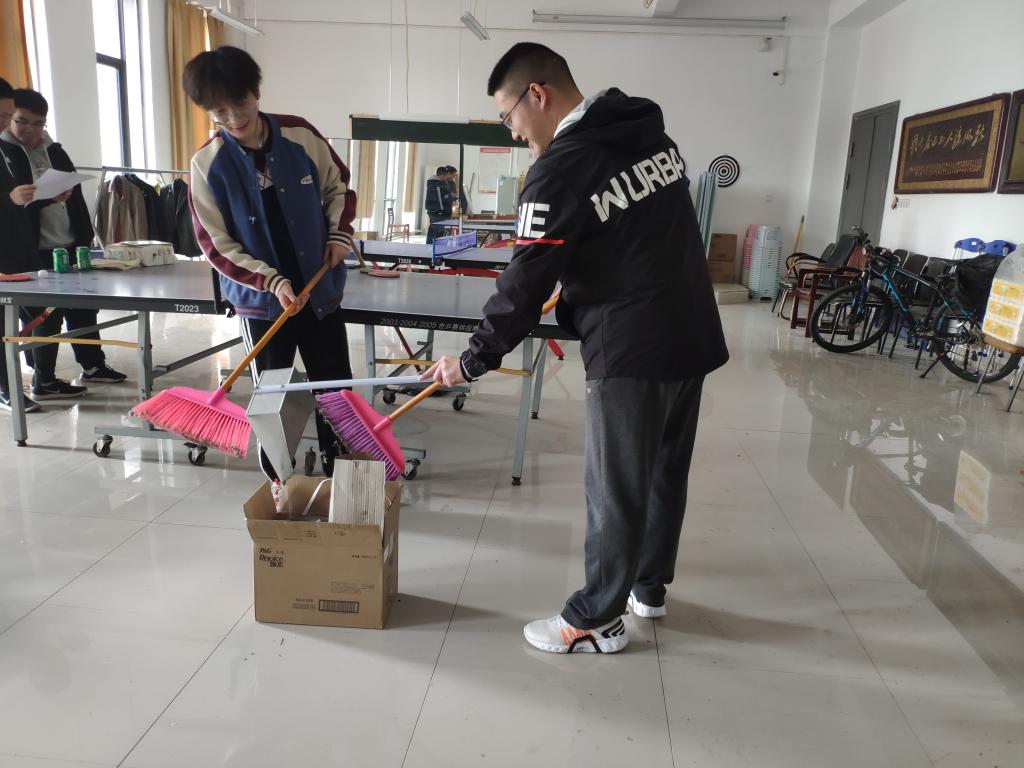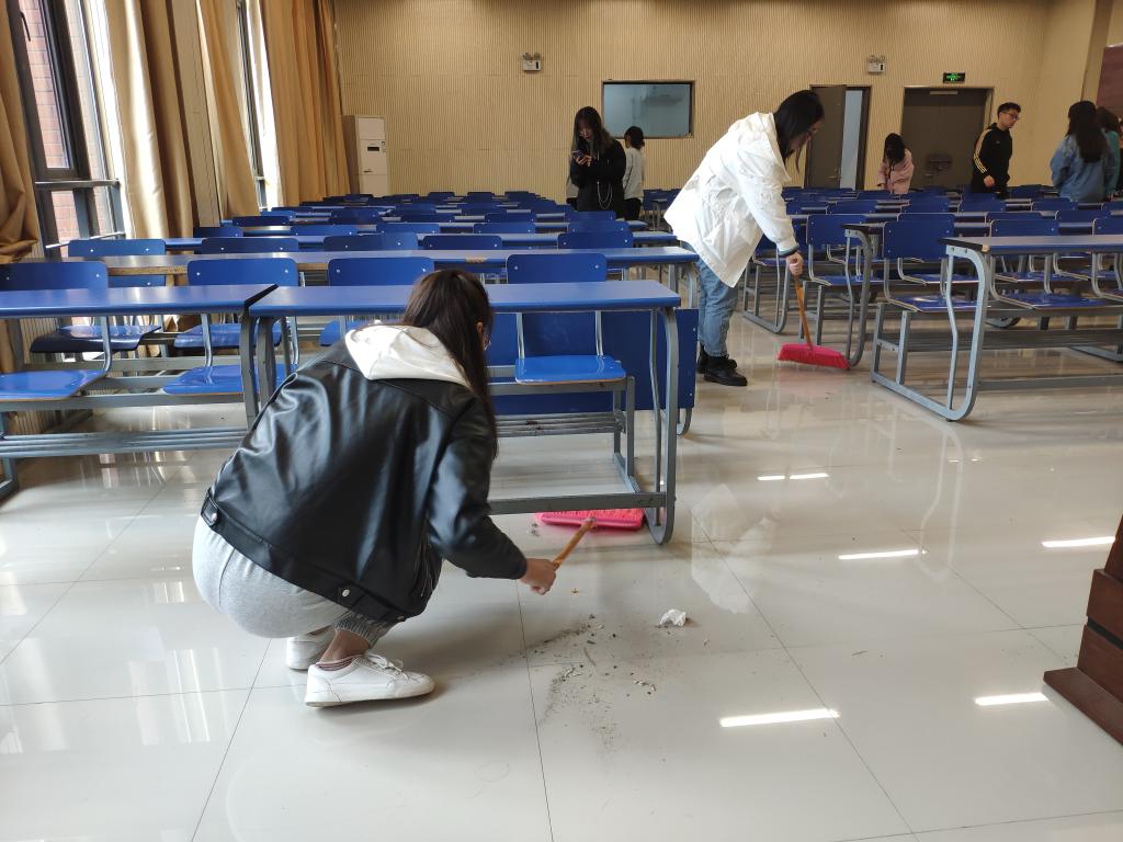 本次大扫除的范围主要是学院楼的报告厅和工会活动室。活动开始时,党员同志们自觉分成两部分,男女生各负责一块场地。其中女同学负责报告厅的地面打扫和桌椅擦洗,而工会活动室的整理和清扫则由男同学来完成。同学们认真清理杂物,在大家齐心协力的合作下,桌椅上的灰尘被擦得干干净净,物品也被摆放的整齐有序。同学们用自己的实际行动为学院增添了一份清新,一抹明亮。