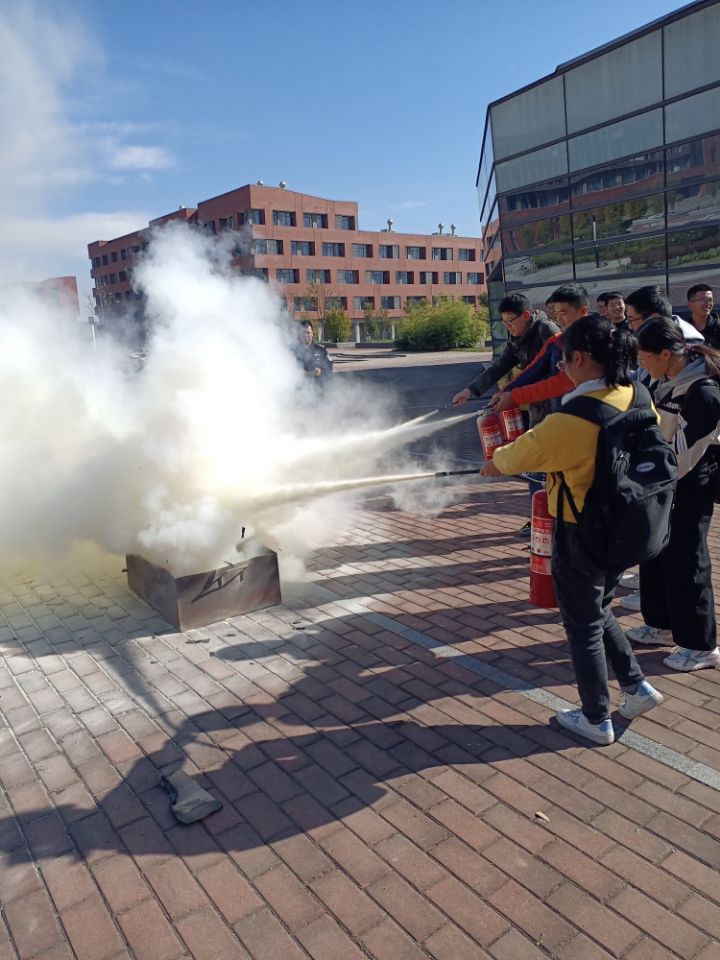 培训后,彭老师组织全体成员在学院楼前开展初起火灾扑救的实操演练,教会在场学生使用灭火器,提升学生们的自救互救能力,切实把消防安全工作落到实处。