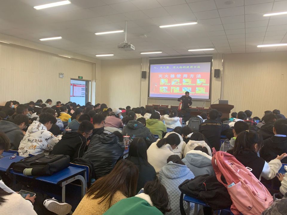 中午12:30分,在学院楼一楼报告厅组织消防知识培训。 本次培训特邀消防科彭老师担任主讲。彭老师结合近年来发生的典型火灾案例,就学生宿舍火灾发生的原因、类型、预防措施、 灭火器材的使用方法以及发生火灾后如何进行自救等作了十分详尽的讲述,同学们获益匪浅。