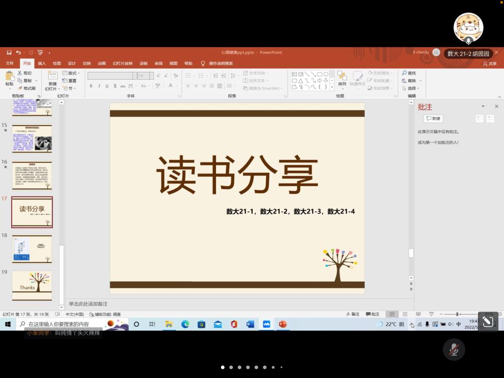 数大学院2021级新生利用线上平台和线下晚自习时间分享了对自己影响最大的一本书。包括了《钢铁是怎样炼成的》、《被讨厌的勇气》、《围城》、《梦的解析》等等。通过分享,同学们不仅学到了更多的知识,更营造了“阅读经典,涵养心灵”的风气。