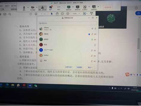 组织研讨,统筹安排基础课教学。线性代数是数学基础课重要课程,为确保基础课教学质量,提高考研率,学院组织召开了线上线性代数教学工作研讨会,对教学计划、教学组织、教学教研进行了研讨,探索教学新方法、新模式,提高教学水平。