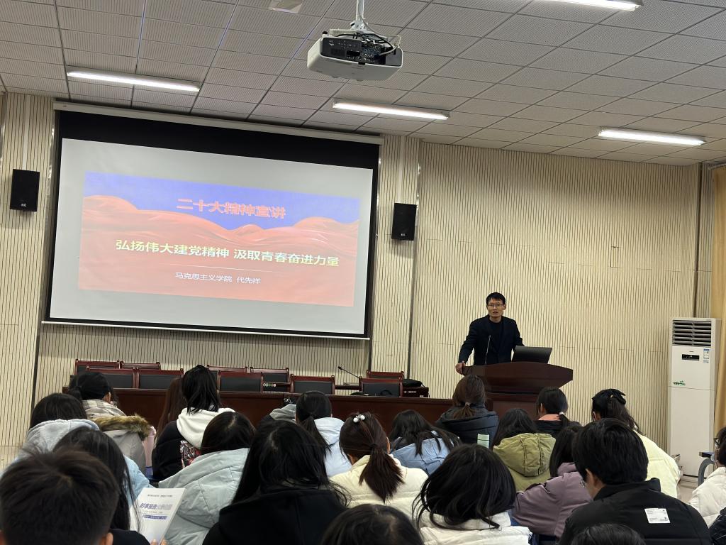 仪式之后,马克思主义学院代先祥老师给学生们上了本次培训的第一课《弘扬伟大建党精神 汲取青春奋进力量》。