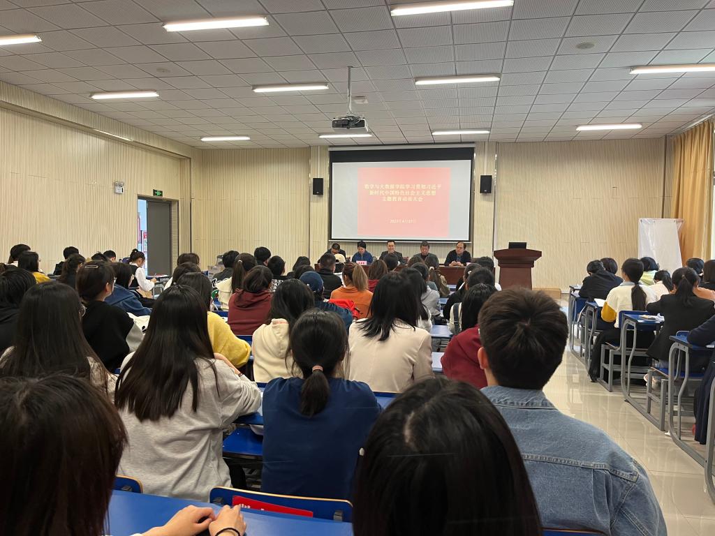 4月27日中午,数学与大数据学院在学院报告厅召开学习贯彻习近平新时代中国特色社会主义思想主题教育动员大会。院党委书记谢中根主持会议。学院领导班子成员、党委委员、党支部书记、教职工党员以及学生党员,共156人参加了会议。