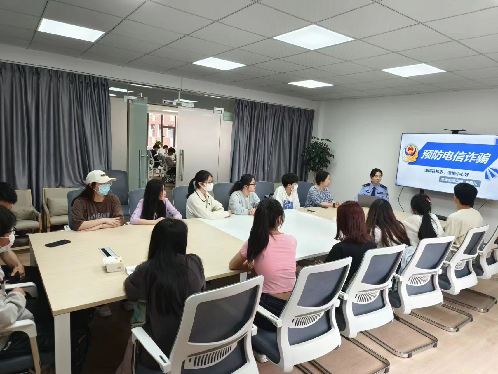 为提高师生“反诈防诈”的安全意识与能力,全力保障师生安全,构建文明、平安校园,2023年5月17日下午,数大学院联合淮河路派出所在一站式社区开展预防电诈讲座,学院党委副书记马蓓蕾、淮河路派出所民警李壹凡以及部分学生代表参加讲座。