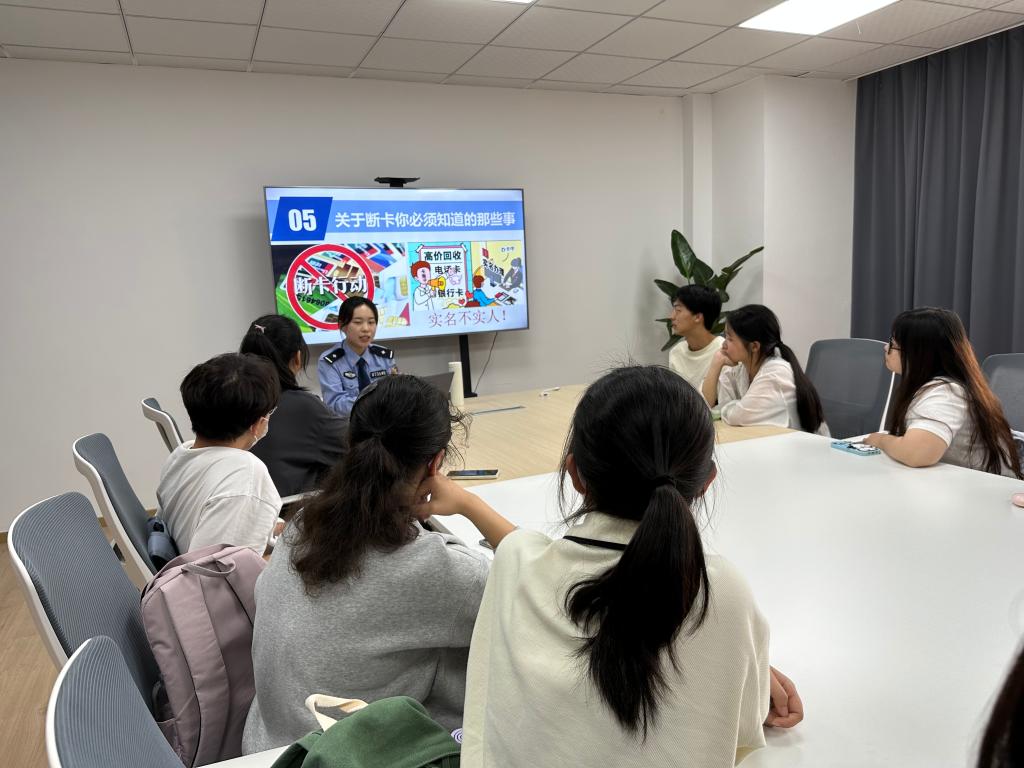 5月下旬,依托学校一站式学生社区,学院邀请淮河路派出所民警李壹凡带领学生认真学习反电诈安全知识,开展诚信及金融知识普及宣传。