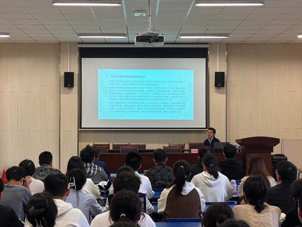 10月22日上午,应数大学院的邀请,中国科学技术大学王新茂副教授在学院楼一楼会议室作题为《线性代数课程教与学的一些思考》的学术报告,学院创新班全体学员认真聆听了学术报告。