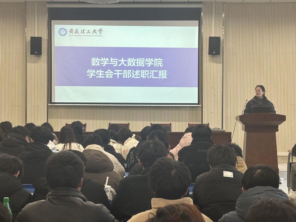 为进一步加强团学组织学生干部队伍建设,数大学院于3月5日中午在学院楼一楼报告厅召开2023-2024学年第一学期团学组织学生干部述职评议工作。学院团委书记王晓悦、各年级辅导员以及全体学生会成员参与会议,会议由辅导员李欣主持。