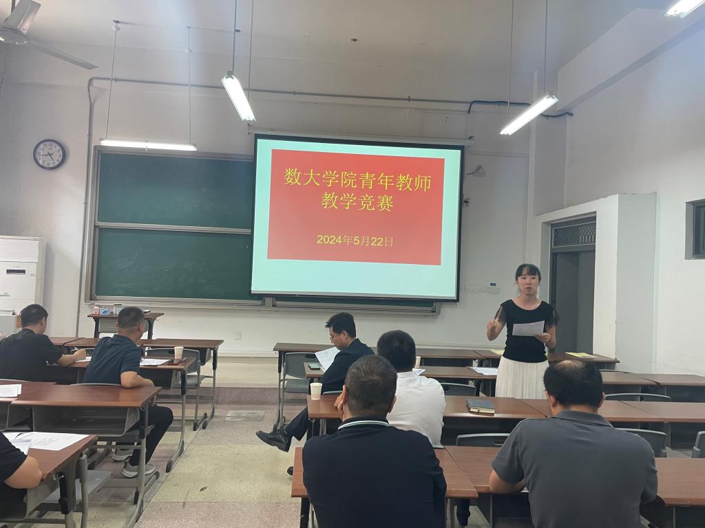 为进一步提高我院青年教师的教学能力和业务水平,数大学院于5月22日下午在明理北302教室举行了青年教师教学竞赛,本次比赛由8名青年教师参赛。